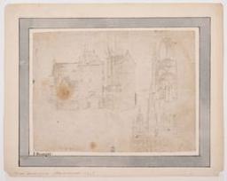 Sheet from a sketchbook with an unidentified castle and late-gothic architectural details [Drawing] / drawn in silverpoint by an anonymous draughtsman. - [Brabant?], [c. 1520]. - 1 drawing : metalpoint on white prepared paper (laid down) ; 130 x 175 mm. - Annotated on the old mount, in pen and brown ink: 'I. Breugel.' Formerly attributed to Jan I Bruegel. - Mark KBR in blue ink (Lugt 1741).
